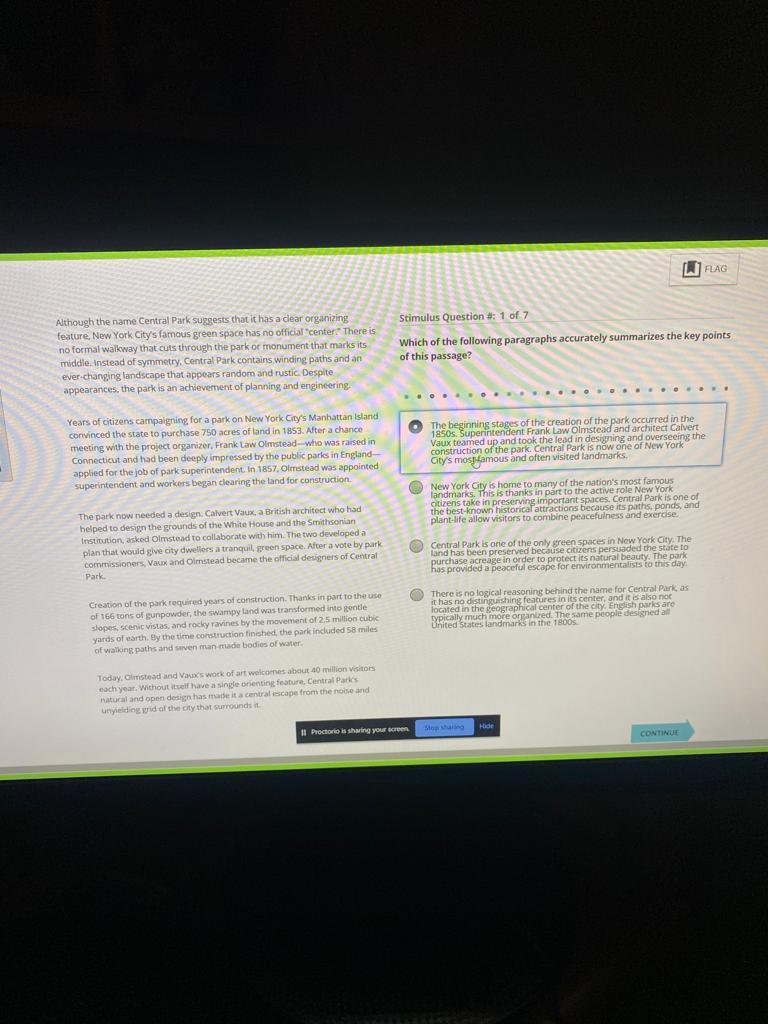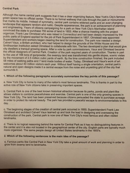 Solved Ati Teas Reading Questions Central Park Chegg Com
